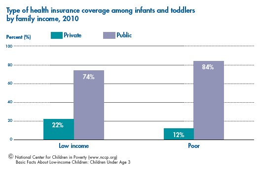- 74 percent of infants and toddlers living in low-income families – 4.2 million – are covered by public insurance.